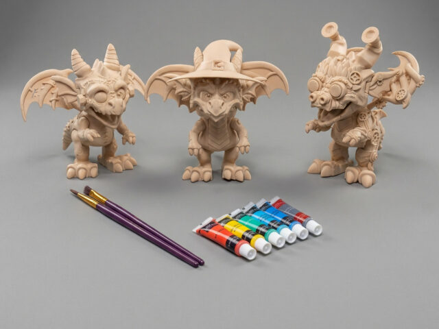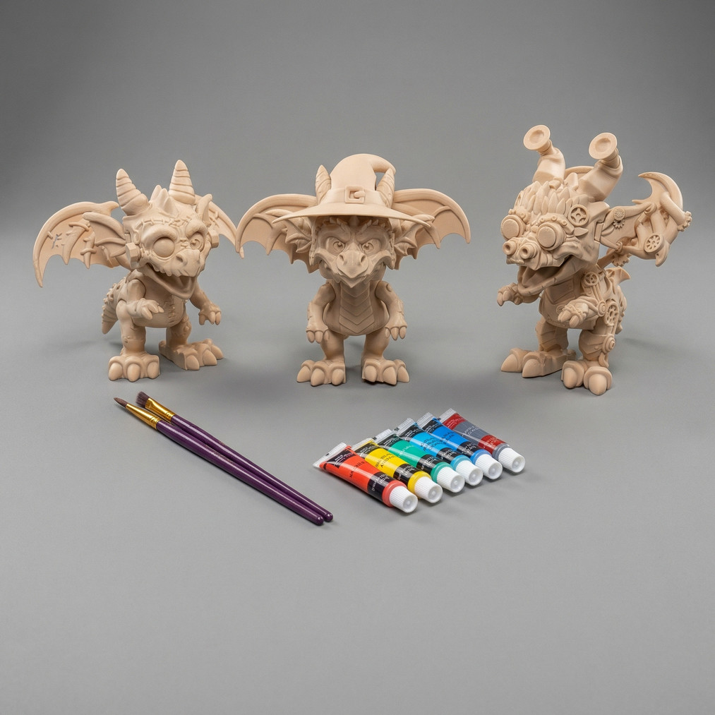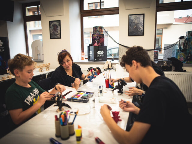 Malovací sady pro velké i malé. Nabízíme na stánku možnost nákupu malovacích sad s figurkami z 3D tiskáren včetně příslušenství. Zároveň si u nás mohou návštěvníci figurky vymalovat u připraveného stolečku plným barviček a štětců. Nabízíme figurky i sady pro začátečníky i pokročilé.